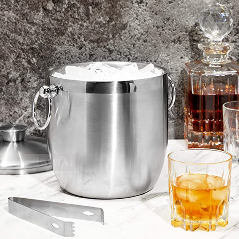 Seau à glace en acier inoxydable isolé à Double paroi 3L avec couvercle, pelle, pince et passoire